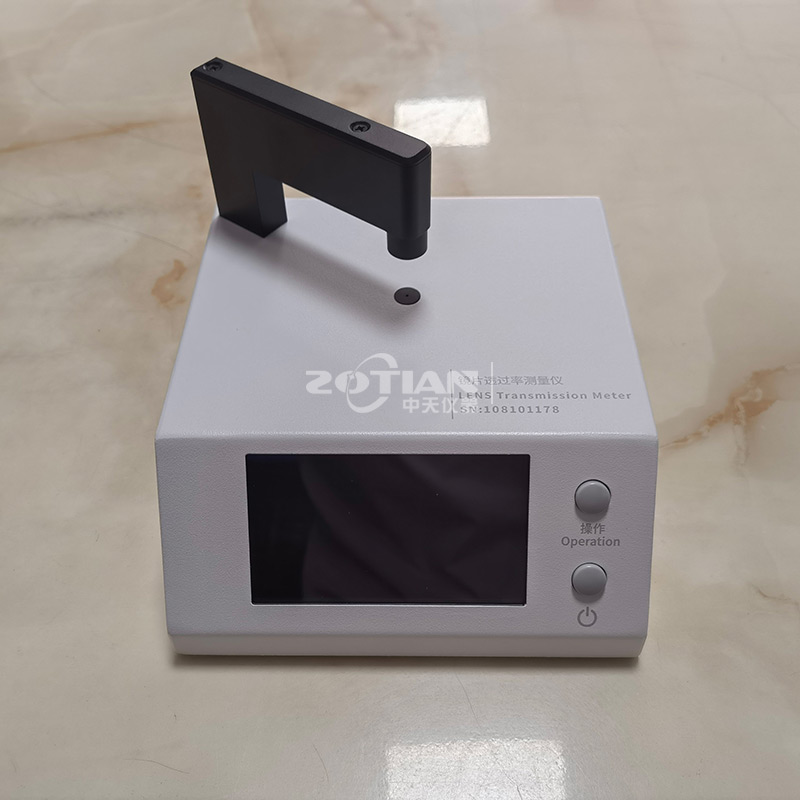 OT-850B鏡片透過率測試儀的測試原理是采用紅外850nm光源,紅外940nm光源和可見550nm光源照射被測透明物質(zhì),感應器分別探測三種光源的入射光強和透過被測透明物質(zhì)后的光強,透過光強與入射光強的比值即為透過率,用百分數(shù)表示。